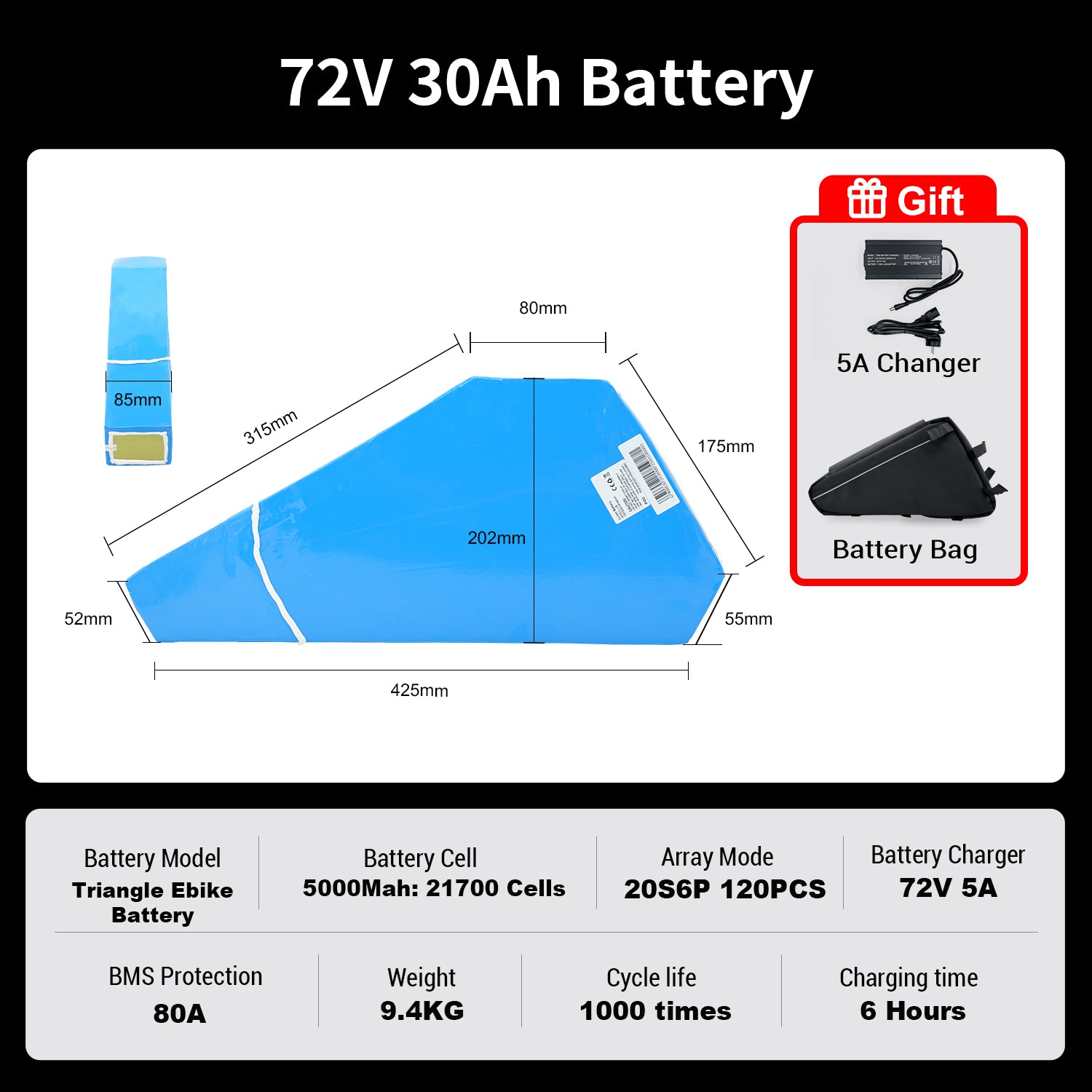 Equipped with a 3000W high-performance brushless motor and 72V high-voltage system, this kit delivers explosive acceleration and a top speed of 75KM/H, making hill climbs and overtaking effortless for an exhilarating ride!Features a P30D rim, perfectly suited for 2.5-3.0tires, ensuring superior traction and stability on both city roads and rough terrains.72V 3000W motor is suitable for a single-speed rear screw freewheel