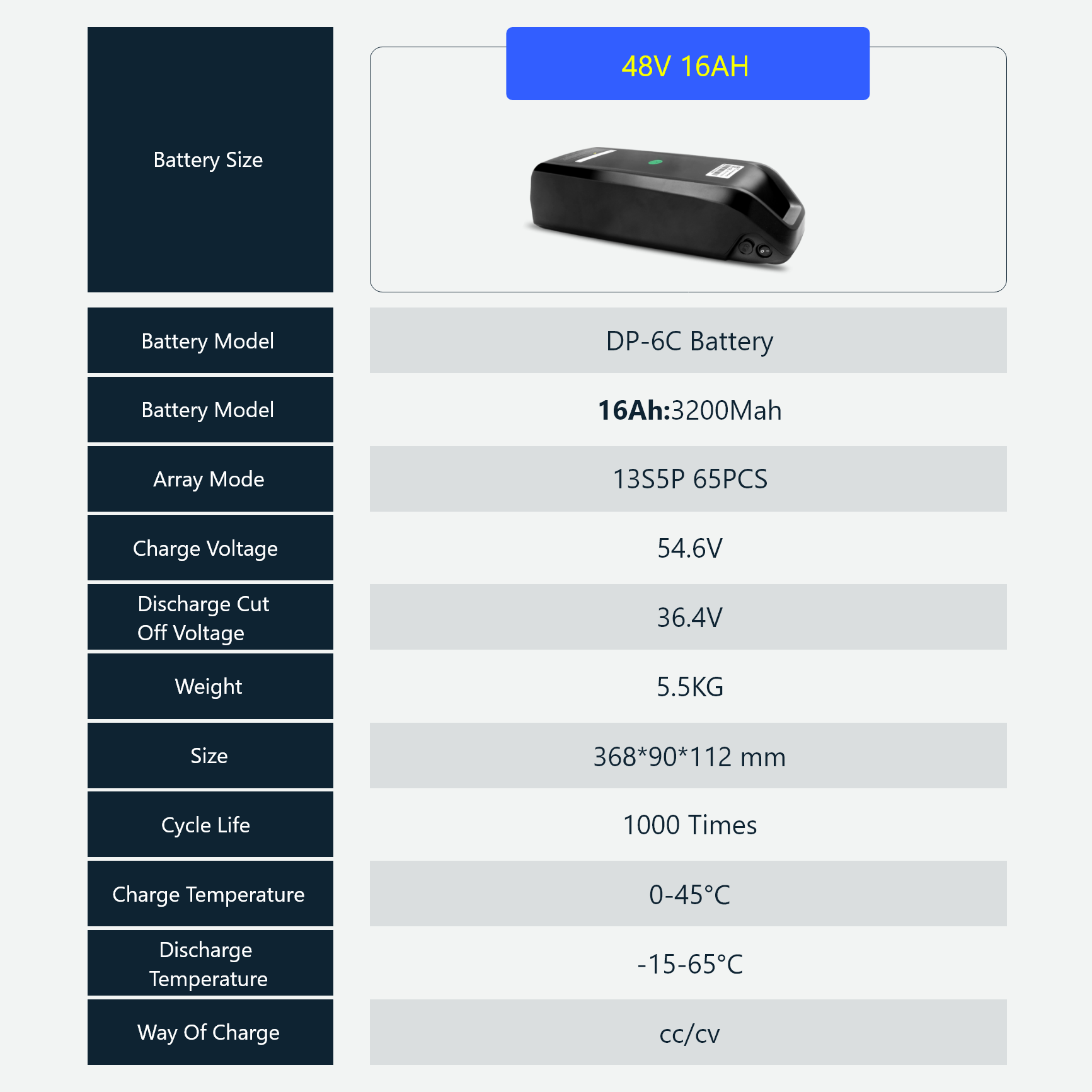 Our electric bike conversion kits come equipped with a high-capacity 48V 15AH DP.6C Battery, designed to power your journey over considerable distances. With this battery, the trip distance for your bicycle conversion is approximately 50-70Km, depending on various conditions.